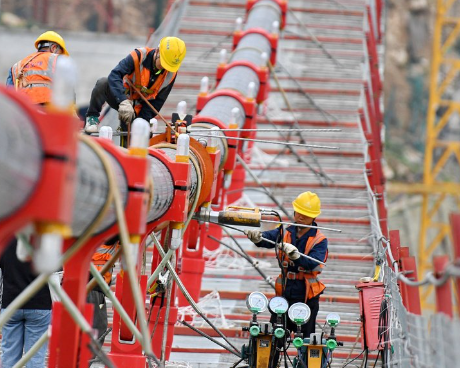 在這壯觀背后,是無數(shù)搭建工人辛勤付出的身影。他們每日都要在高處作業(yè),那高高的橋塔、半空的主纜之上,就是他們的“戰(zhàn)場”。當工人們攀爬至數(shù)十米甚至上百米的高空時,腳下是讓人眩暈的高度,耳邊是呼嘯而過的風聲,每一個動作都必須小心翼翼。