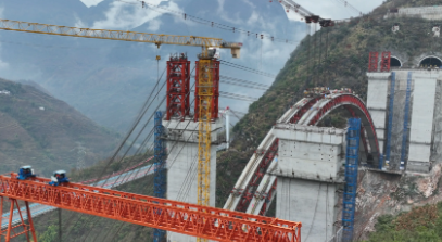 發(fā)布時間 :2025-03-29 11:38 瀏覽次數(shù) : 160烏蒙山大橋,宛如一座即將橫跨天塹的鋼鐵巨龍,其建設(shè)過程充滿了挑戰(zhàn)與創(chuàng)新。主拱圈節(jié)段在特制的胎座上精心預(yù)制,每一塊節(jié)段都如同巨龍身上的關(guān)鍵鱗片,承載著橋梁的穩(wěn)固與安全。預(yù)制完成后,將啟用大噸位、無塔架、可橫移式纜索吊裝系統(tǒng)來進行吊裝作業(yè),這一系統(tǒng)猶如一雙無形卻強大的巨手,精準(zhǔn)地將節(jié)段吊運至指定位置。