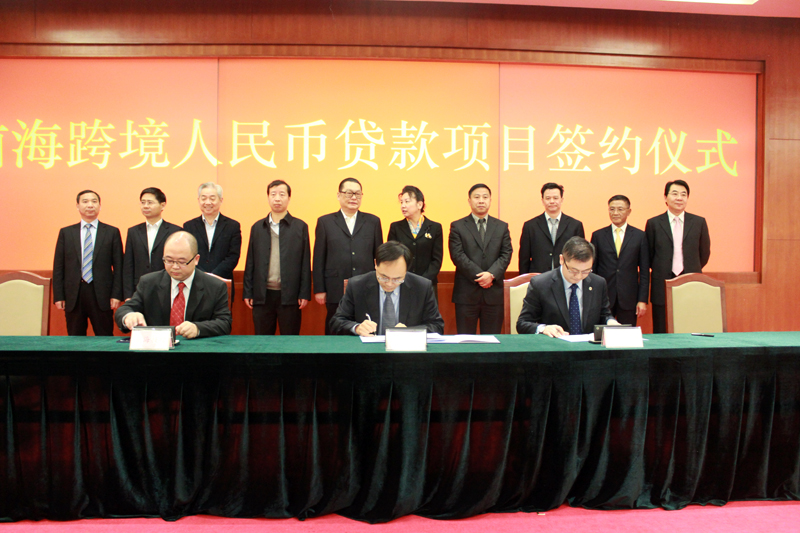 2013年1月28日,艷陽(yáng)高照,和風(fēng)送爽,深圳市市民中心B區(qū)多功能廳內(nèi)人潮涌動(dòng),喜氣洋洋。前海跨境人民幣貸款項(xiàng)目簽約儀式在此舉行。15家在香港經(jīng)營(yíng)人民幣業(yè)務(wù)的銀行和15家前