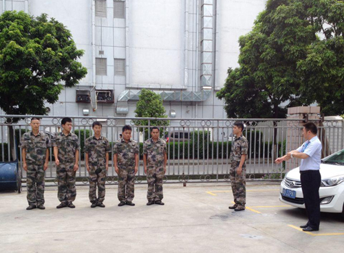為了加強保安隊伍建設,提高隊員的行為規(guī)范和職業(yè)形象,集團對保安隊隊員進行強化訓練。7月25日,集團保安隊隊長陳志剛率領隊員在園區(qū)內如期開展訓練,行政部經(jīng)理何先兵也到現(xiàn)